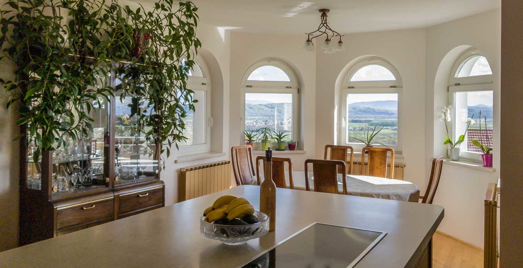 Čudovita vila s panoramskim razgledom na Ptujsko polje se nahaja v ne strnjenem naselju, vrh gričevnatih Tibolcev, ki ležijo v občini Gorišnica, med Ptujem in Ormožem, širše med Graz-em iz Zagreb-om.