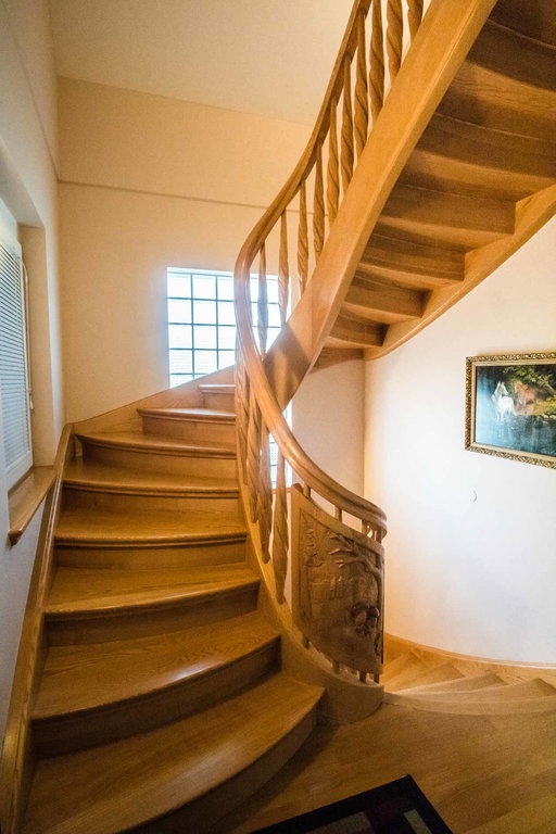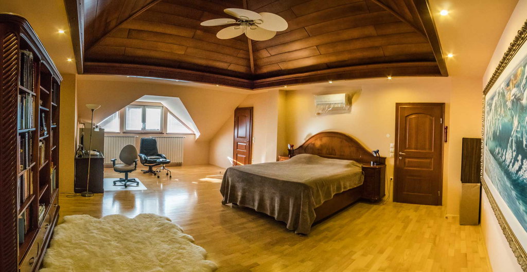 Razkošno leseno stopnišče nas vodi v mansardo kjer iz hodnika vstopamo v veliko spalnico, iz nje naprej v shrambo, garderobo, kopalnico. V nadaljevanju hodnika vstopamo v prostor nad garažo, ki še ni izgotovljen ter ponuja dodatno izdelavo.