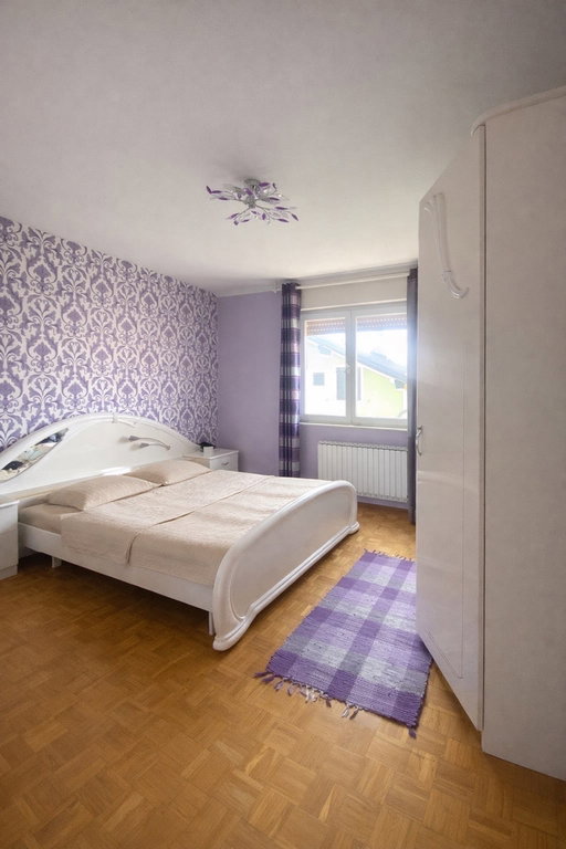 Hiša obsega tri etaže (polklet + pritličje + nadstropje) in je zasnovana zelo funkcionalno. Že ob vstopu vas nekaj stopnic popelje v pritličje, kjer se nahajajo spalnica, dnevna soba, kuhinja z jedilnico, kopalnica in ločen WC. Prostori so veliki, zračni in polni naravne svetlobe, talne obloge pa sestavljajo parket, keramika in topli pod.