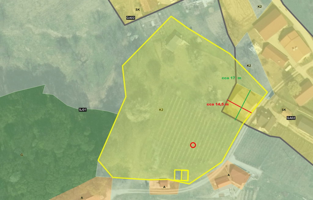 Zemljišče ob objektu je v območju stavbnih površin, preostali del pa je kmetijski. Večji del zavzema lep, dobro vzdrževan vinograd. Na posesti raste tudi nekaj sadnih dreves, del zemljišča pa je urejen kot pašnik. Obilo je prostora, da si uredite svoj vrt, razširite sadovnjak ali ustvarite čisto svojo samooskrbno oazo domače pridelave.