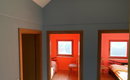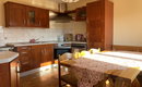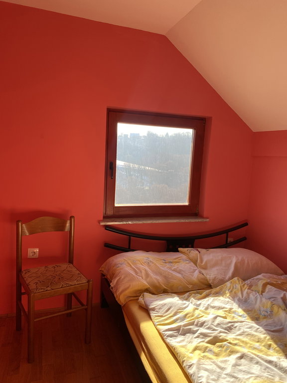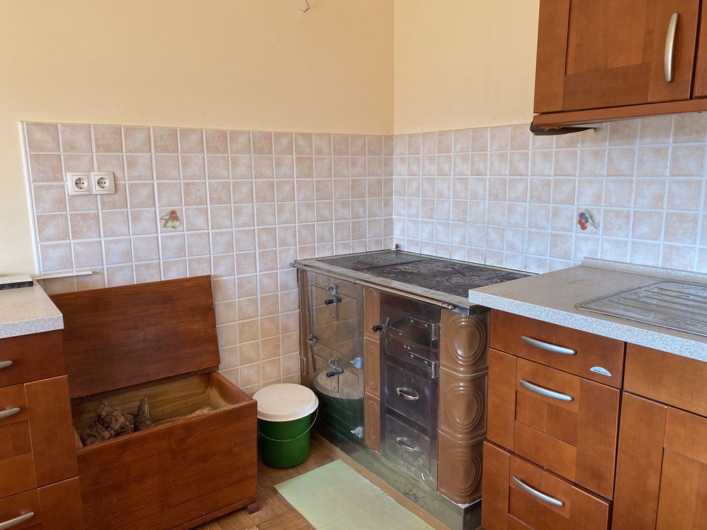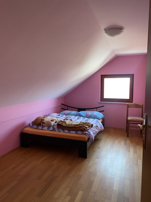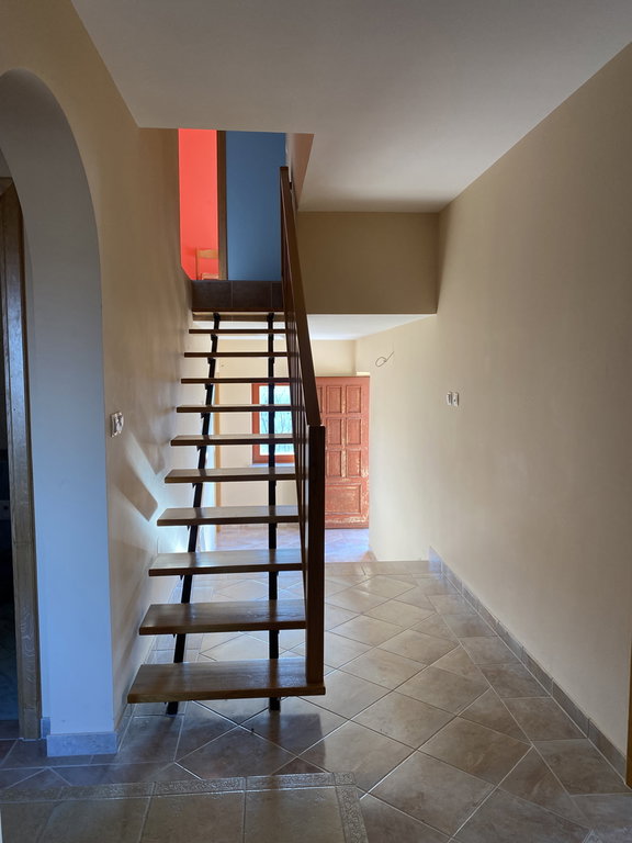 Stopnišče vodi do stanovanjskega dela, ki obsega v prvi etaži domačo kmečko kuhinjo s pečjo na drva (kjer običajno tudi kuhajo) ter jedilnico. V nadaljevanju je prostorna dnevna soba s toplozračnim kaminom z izhodom na balkon, v nadaljevanju spalnica, samostojni wc, kopalnica. Stopnišče nas vodi v drugo etažo, ki obsega dve sobi ter kopalnico s tušem. Etažo višje še izkoriščena mansarda kjer so tri sobe ter tehnični prostor.