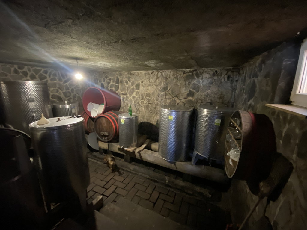 Ob dovozu se vstopa v pol kletno etažo, kjer se nahajata dva velika prehodna prostora, ki se koristita za predelavo vina, v nadaljevanju vinska klet. Posebej še vhod v velik prostor za druženje ter degustacijo, ki ima tudi svoje toalete.