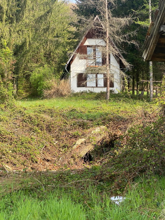Na najvišji točki posesti, ob gozdu stoji vikend, v tl. izmeri 24,6 m2, ki je bil grajen okrog leta 1980, opremljen z elektriko in vodo. Vikend obsega enovit prostor v pritličju, ter enovit prostor s kopalnico v mansardi. Služil je krajšim nastanitvam, in prinašal veliko dobre volje. Pod vikendom zbiralnik vode.