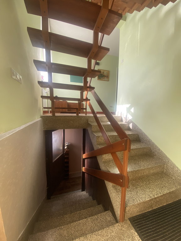 Hiša obsega tri etaže (polklet + pritličje + nadstropje) in je zasnovana zelo funkcionalno. Že ob vstopu vas nekaj stopnic popelje v pritličje, kjer se nahajajo spalnica, dnevna soba, kuhinja z jedilnico, kopalnica in ločen WC. Prostori so veliki, zračni in polni naravne svetlobe, talne obloge pa sestavljajo parket, keramika in topli pod.