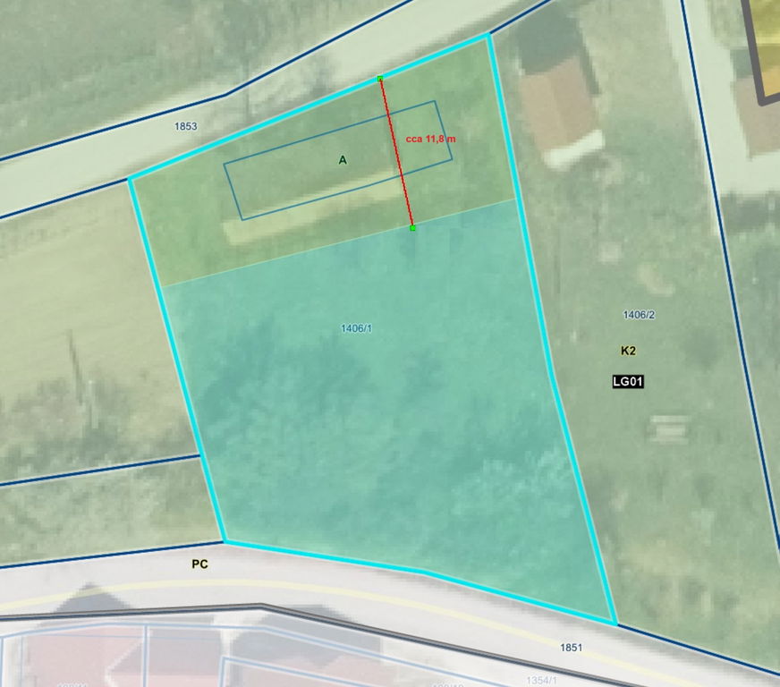 Zemljišče meri skupno 1076 m2 in se rahlo od vaške asfaltirane ceste spušča po hribu navzdol. Zemljišče je v ravnem delu ob cesti zazidljivo, preostalo je pašnik - kmetijsko zemljišče. Na dvorišču z odprto, sončno lego se bohoti nekaj domače trte, kot se to spodobi za vinorodne kraje. Možnost vrta, sadovnjaka…