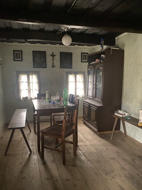 Hiša obsega predprostor, odprto kuhinjo ter kmečko sobo. Ob vhodu v hišo še vhod v shrambo ter prostor, kjer je bila nekoč vinska klet. Za hišo shrambi. Čez obdobje se je hiša prilagaja potrebam, vzdrževala. Ima pridobljeno gradbeno in uporabno dovoljenje. Priključek za vodo in elektriko v neposredni bližini.