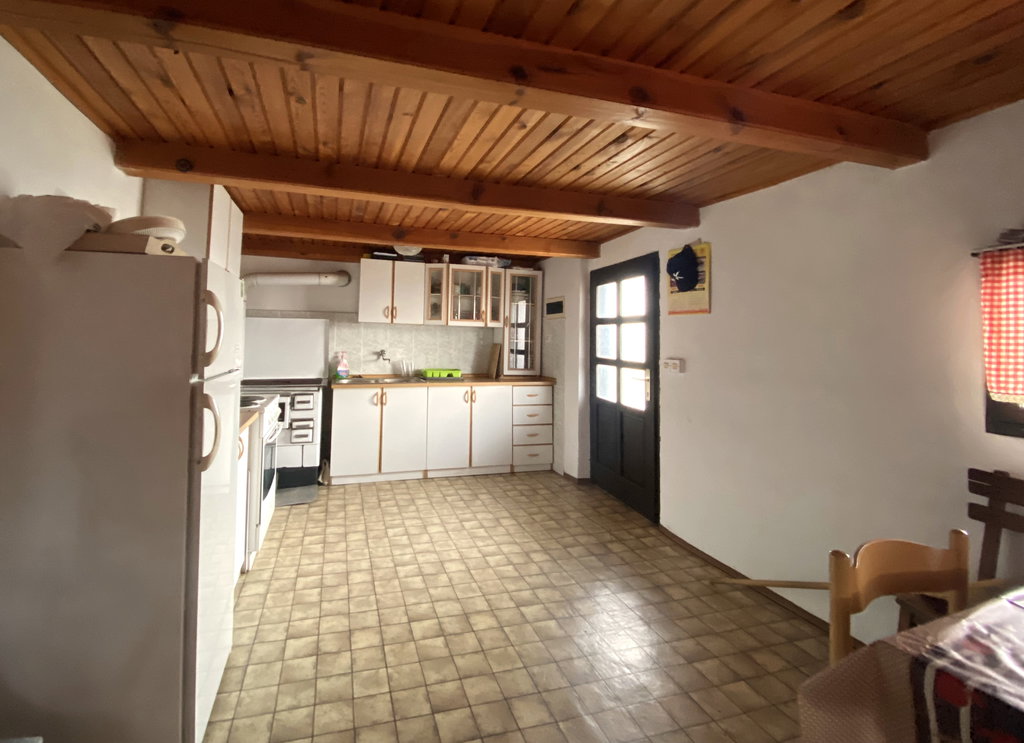 Hiša obsega dva večja prostora, v enem je kuhinja z jedilnico, v drugem prostoru je prostorna shramba. Hiša je delno podkletena, kjer je dobro vzdrževana in prenovljena obokana vinska klet. Čez obdobje se je hiša prilagaja potrebam ter redno vzdrževala. Večje obnove so potekale pred cca 15 leti, obnovili so se leseni stropovi, lesena okna, tlaki, streha se je obnavljala pred cca 7 leti. Urejen priključek za vodo in elektriko, odvonjavanje preko ponikalnice, ogrevanje na peč na trdo gorivo v bivalnem prostoru. Wc urejen zunaj.
